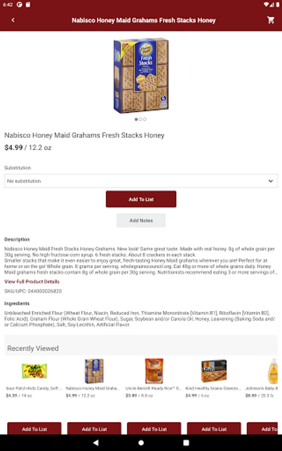 View information about products, including pictures, descriptions, ingredients, instructions and nutrition information