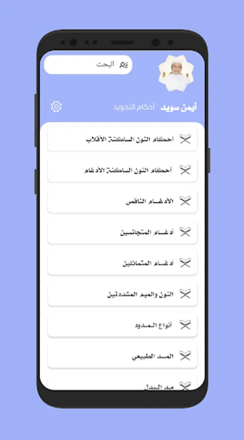 The provisions of intonation without the net, voice and with high quality in a distinctive application with multiple characteristics that ensure easy use of the lessons of teaching the provisions of the complete intonation of Sheikh Ayman Suwaid without the Internet.