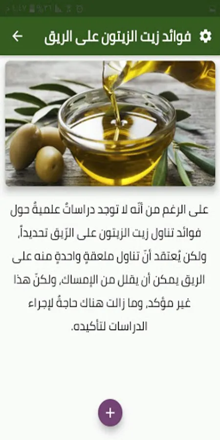 To provide you with the latest knowledge of the benefits of olive oil, which is available through free pictures and information online and without the need to connect to the network, it is characterized by its high resolution and excellent quality, easy to display, save and share with your friends, loved ones and members of your family, download the application components / benefits olive oil