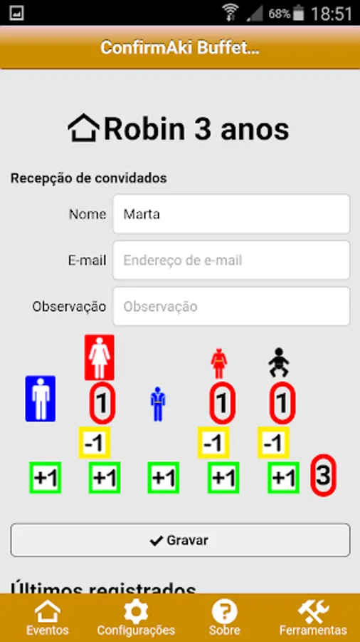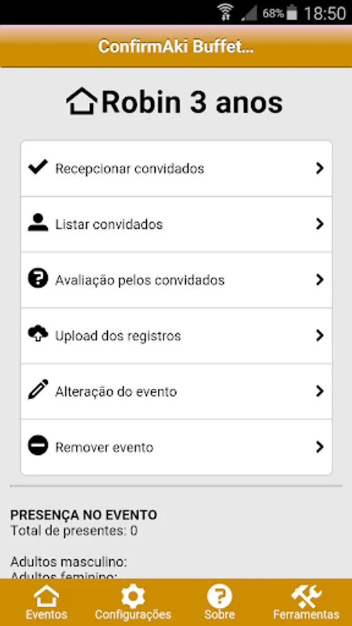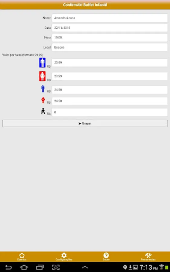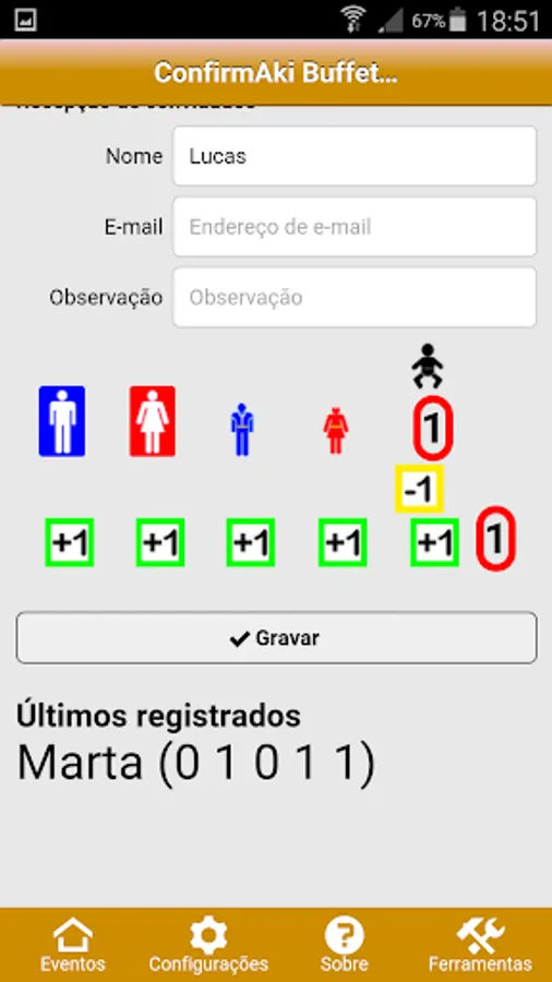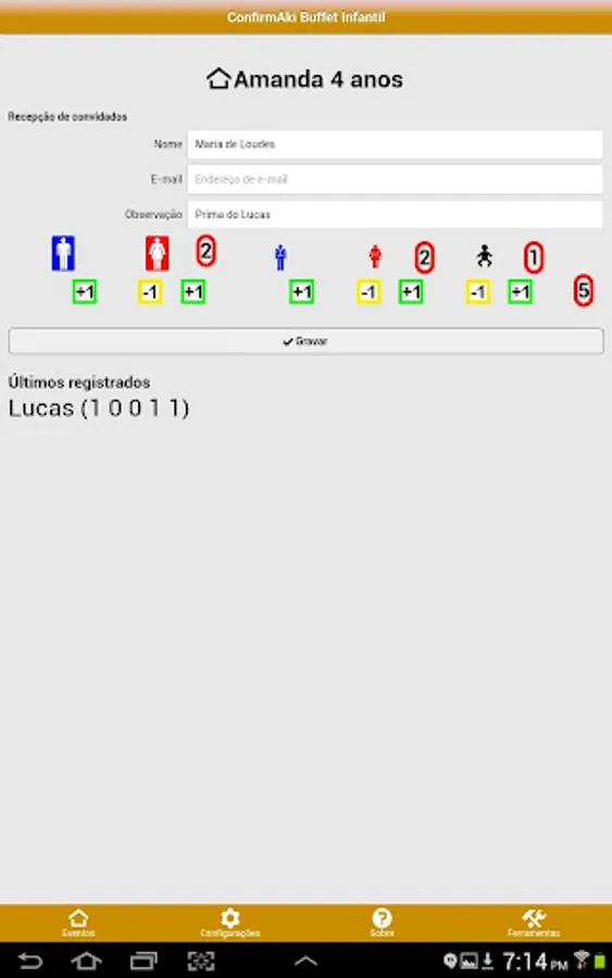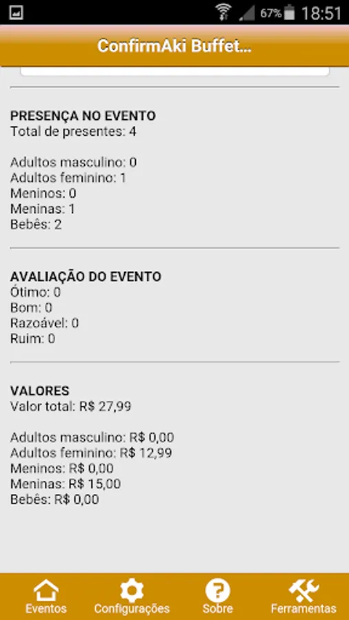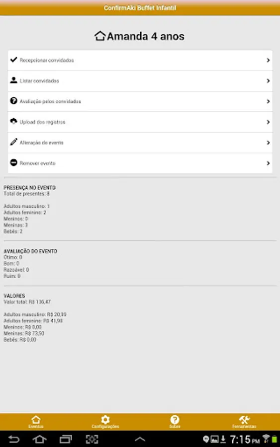 At any time you have an instant overview of the amount of people attending the event, stratified by groups mentioned above and already totaled the value of the event. At the end of the party you already have the value and the summary to present to the contractor.