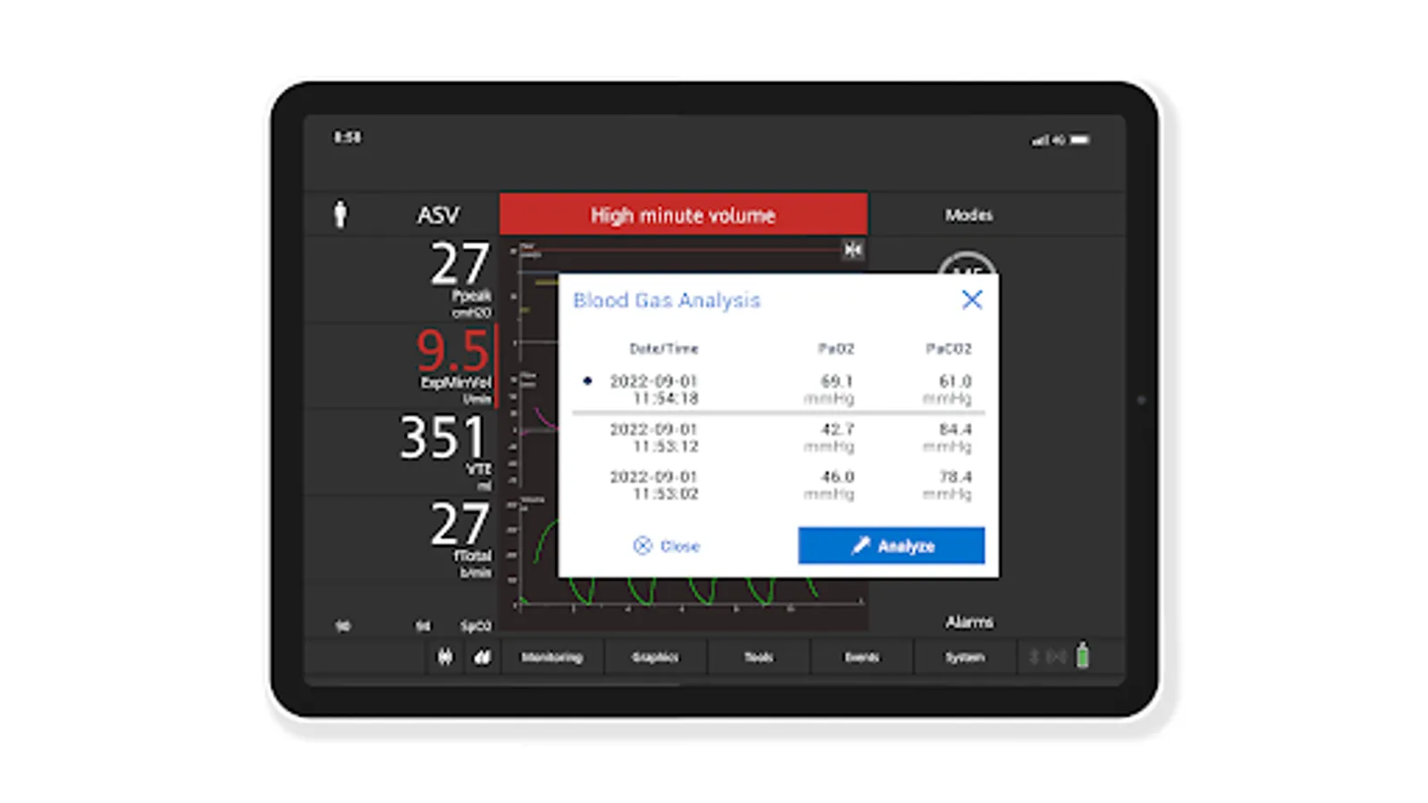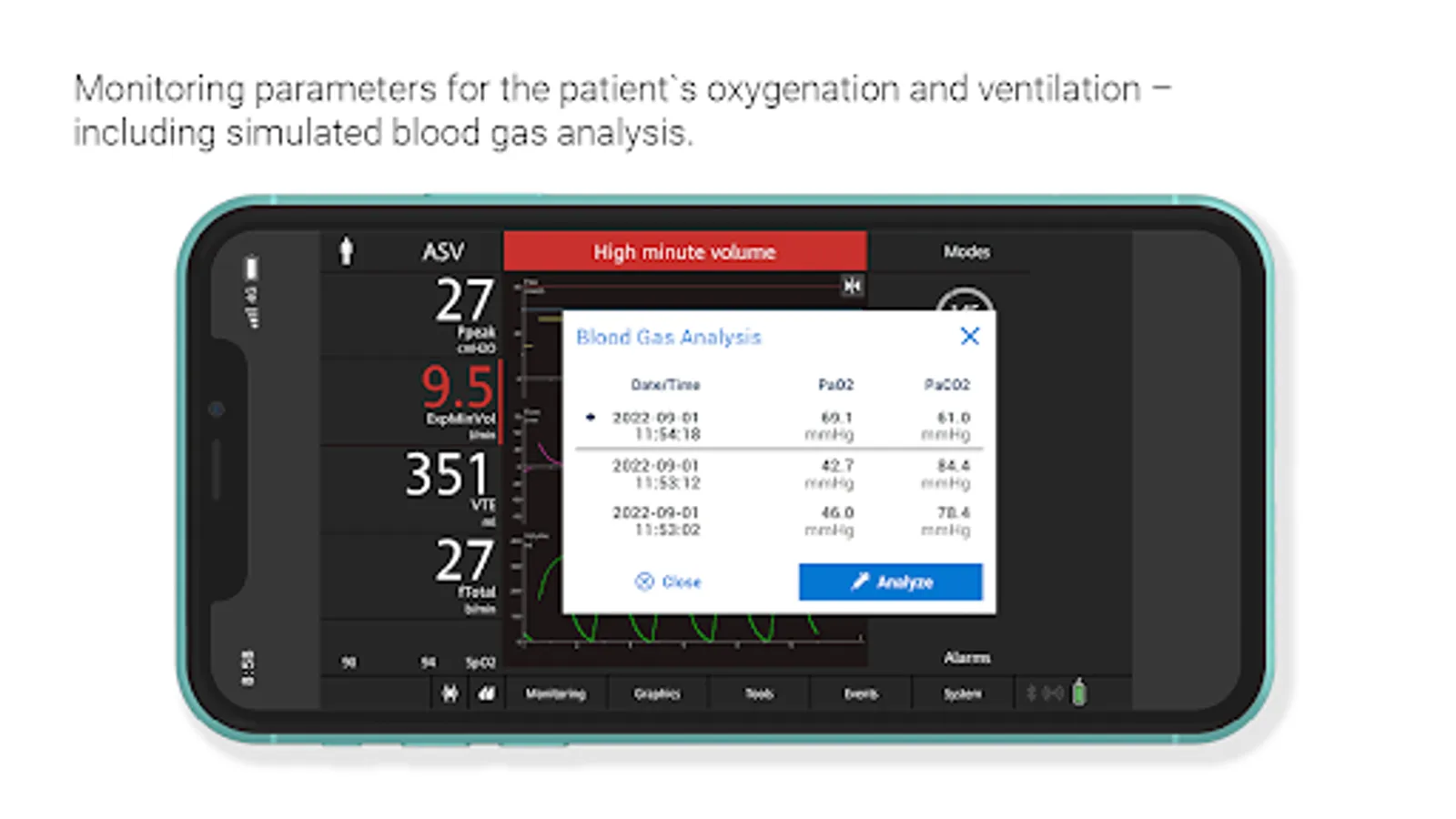 • Check the effect on your patient’s oxygenation and ventilation – you can even simulate a blood gas analysis
