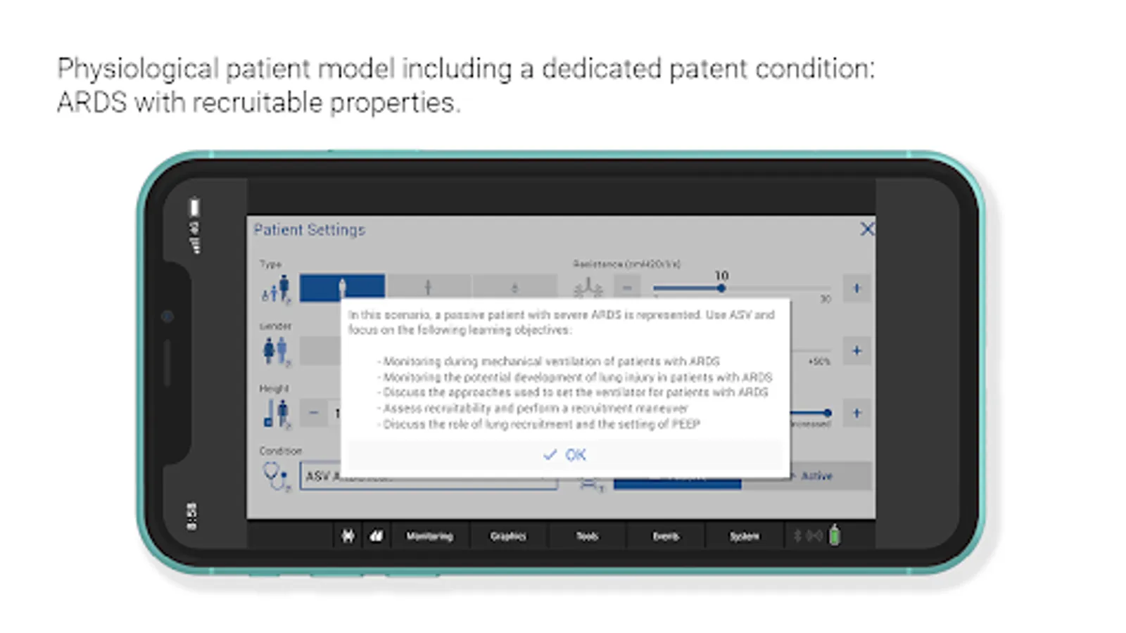 • Choose your patient’s condition and switch at any time - from normal to ARDS