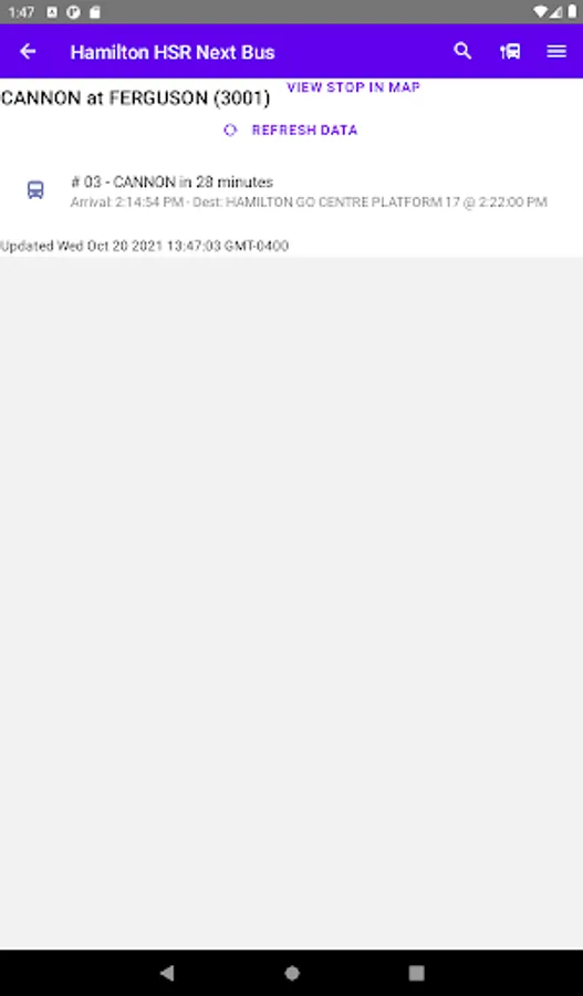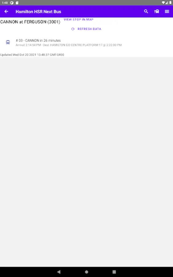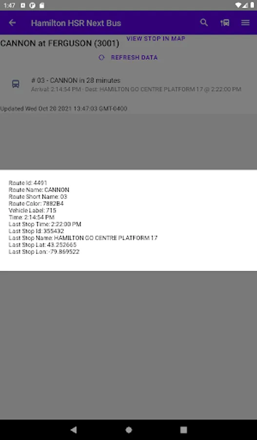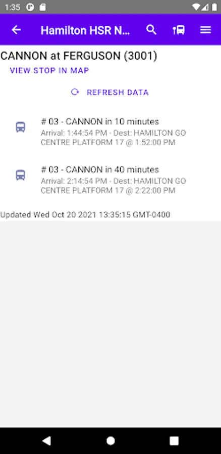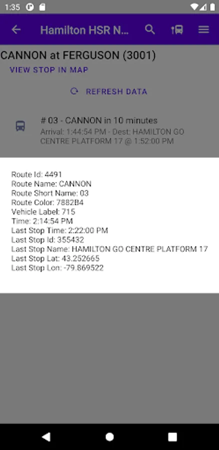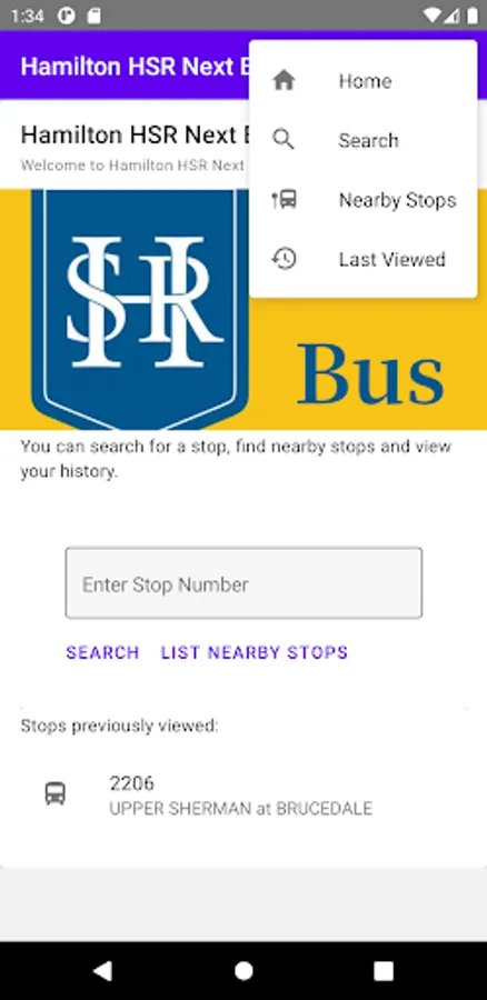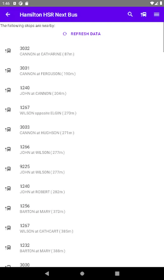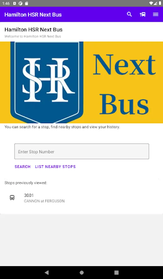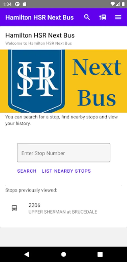 The Hamilton HSR Next Bus App will list all busses at a stop including when they are arriving and where they are going. Data is in real-time from Hamilton's Open Data GTFS (Transit Feed System). You can also use it to find nearby stops. You can get details (bus speed, etc.) on the bus by clicking on it. You can also search your stop number in the home screen or using the Search button.