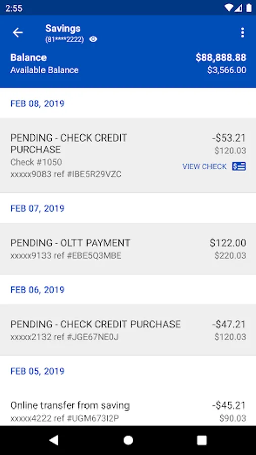 . View recent transactions, including check images