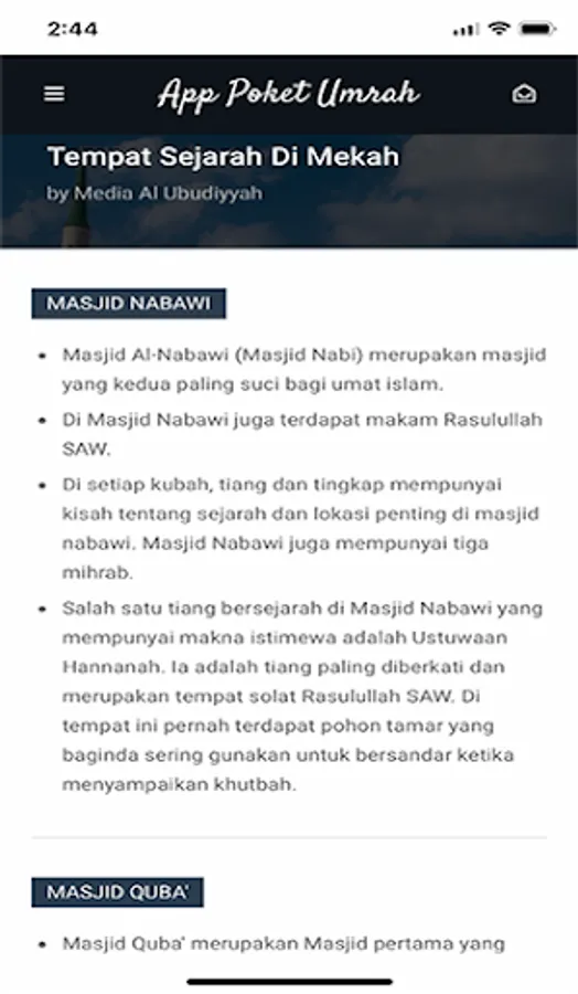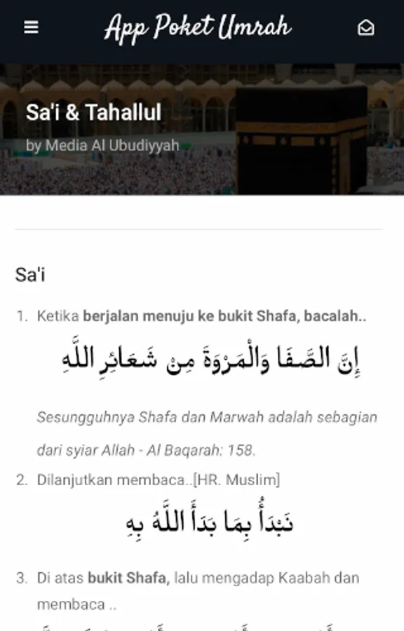 This Umrah Pocket App is developed to facilitate pilgrims while performing Umrah worship. It was developed in a simple and compact way so that it would not be difficult for the congregation to perform Umrah worship. However we try to keep it in line with the Sunnah of the Prophet (saws).
