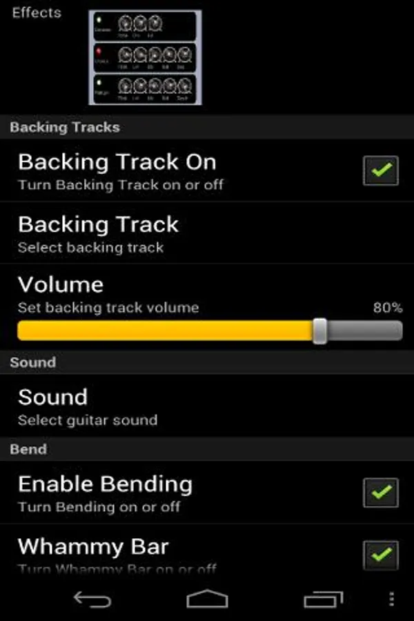 The backing tracks are there as an instant jam-partner -- on the bus, in the airport just jam away and your phone never gets tired of playing chords. Of course, if you don't like the backing tracks you can just turn them off and solo over some song on the media player (may create lag on older, low-spec phones).