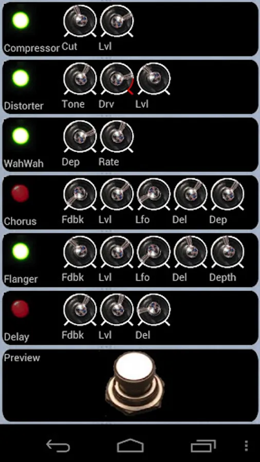Configurable Effects Rack (Compressor, Distorter, Wah Wah, Flanger, Chorus, Delay).