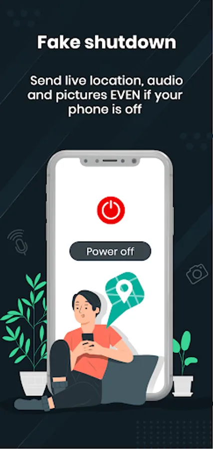 Fake Shutdown: Outsmart intruders with a simulated shutdown that secretly sends real-time location, images, and audio to your emergency contacts.