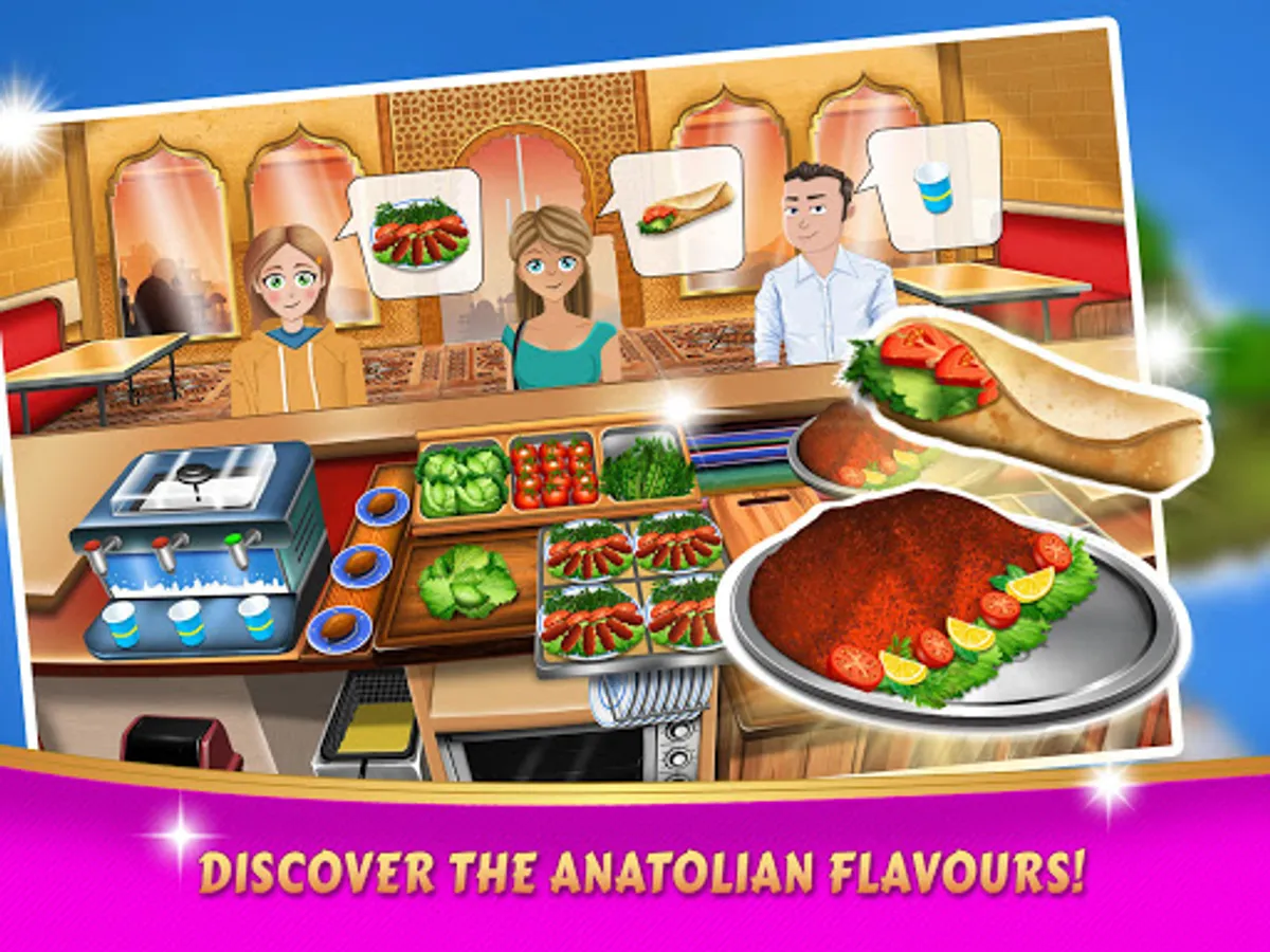 800 episodes spread into 20 locations in Turkey are waiting for you to discover them. Experience the cooking joy of preparing the authentic flavours in diverse cafe restaurants ranging from Mediterranean to Black Sea seafood restaurants, from Turkish Pizza joints to Kebab houses with shish kebabs and doner kebabs. Your kitchen chef skills developed in cook games for free, can be expanded in Anatolia by learning to cook traditional food and become the kitchen world chef.