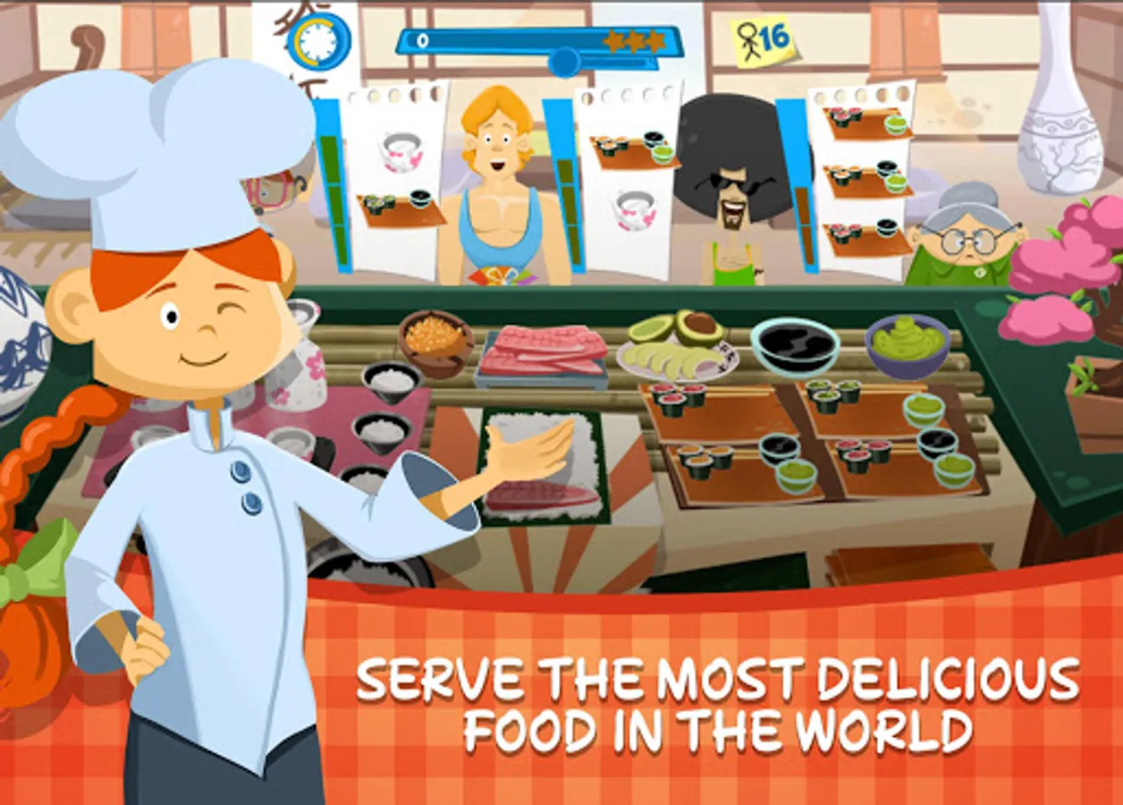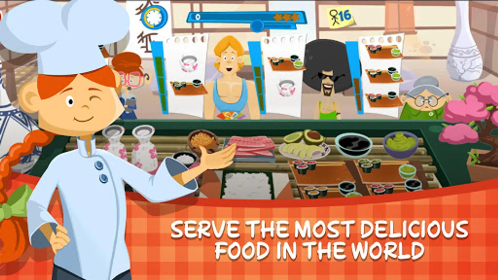 Italian spaghetti, American burger, Japanese sushi and many other different world kitchens. Bake pizza, grill burger, prepare sushi and much more classic restaurant dishes all around the world. Cook, serve and bring your cooking fever out!