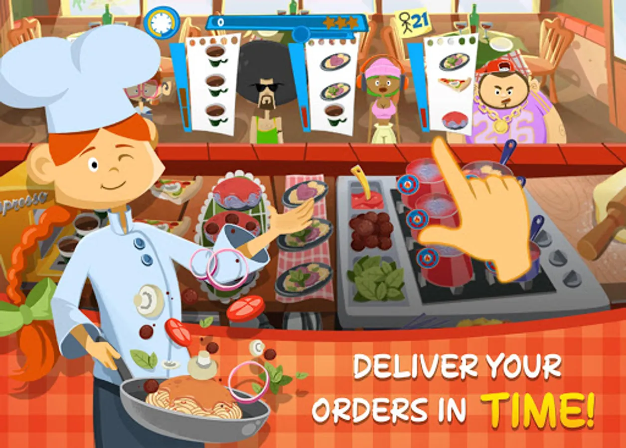 TAP, COOK and SERVE! Easy to play and addictive cooking game is here. Get ready to serve and start cooking madness. Feel the rush by time-management challenges, show your cooking skills and get combos by playing fast. So, earn huge tips in return.
