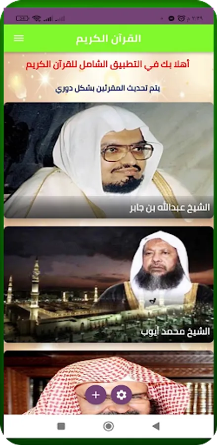 And the application of the Noble Qur’an came comprehensive, listening to a recitation that recites the suras for you with the most beautiful, sweet, and chilling voices, of the fragrant verses.