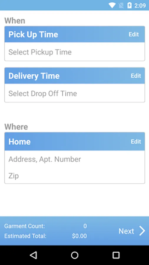 - Request dry cleaning pick up and drop off from your home or office.