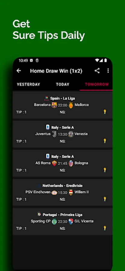 Our app provides you with high odd sure tips that will keep you on the winning side.