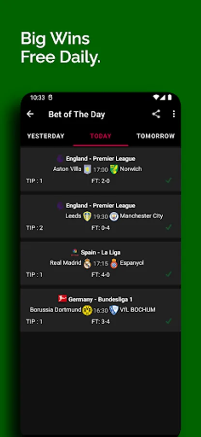 This app provides winning betting tips, live football scores and wins daily.