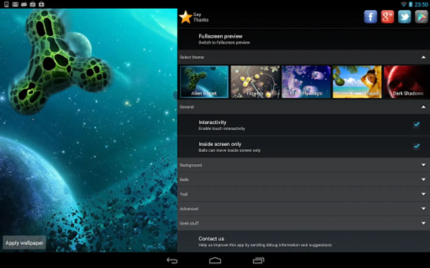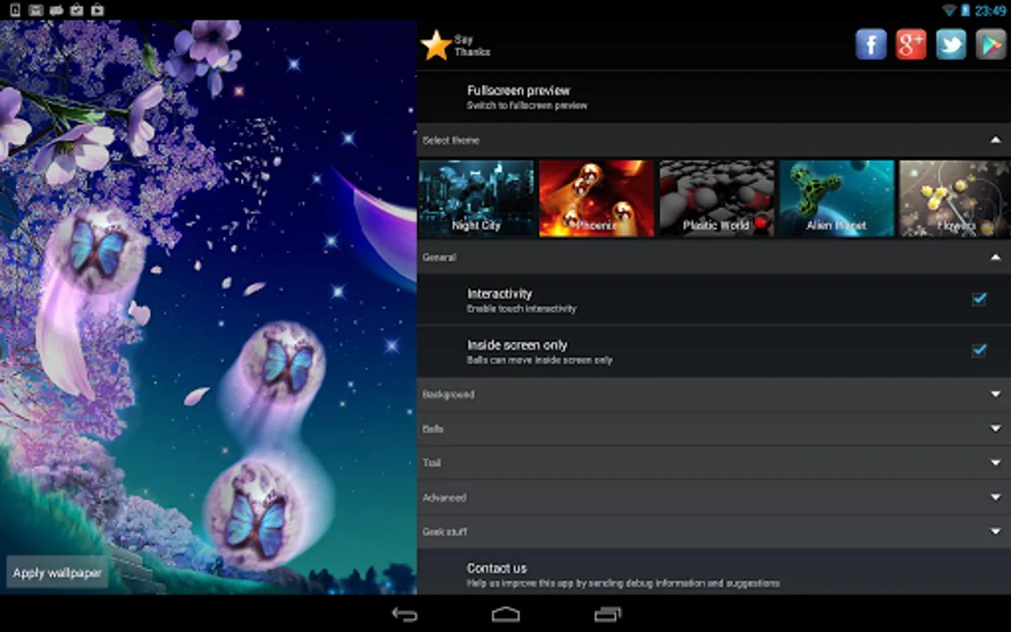 Fantastic interactive 3D live wallpaper with 15 completely different predefined themes and tons of customization options.