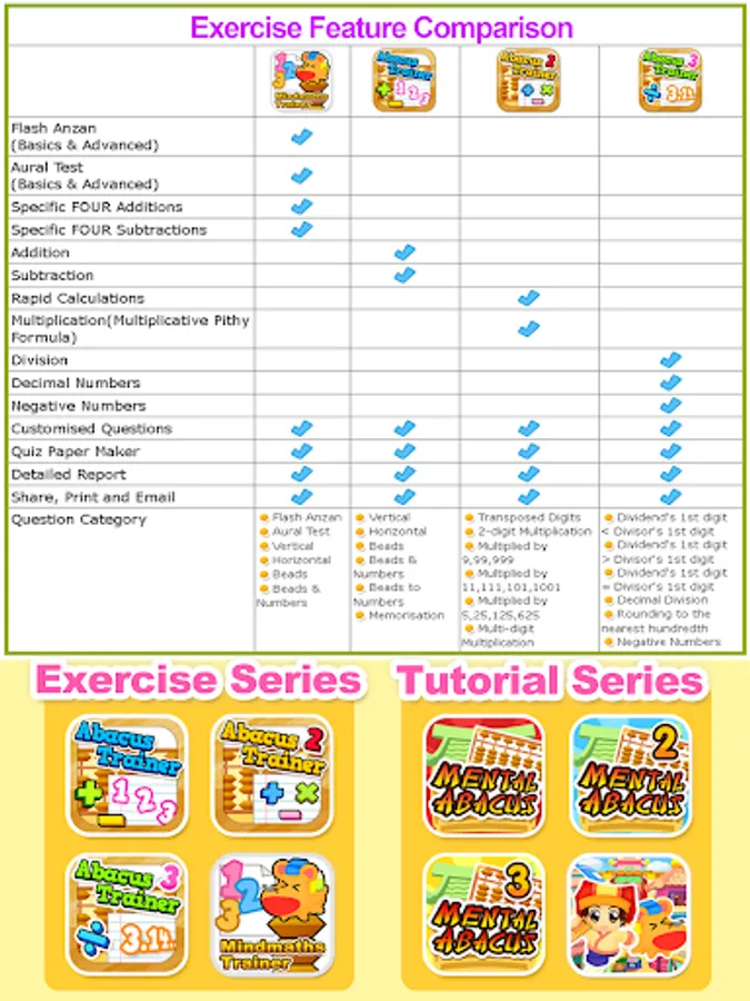 For detailed comparison on Abacus Trainer and Abacus Trainer 3, please refer to