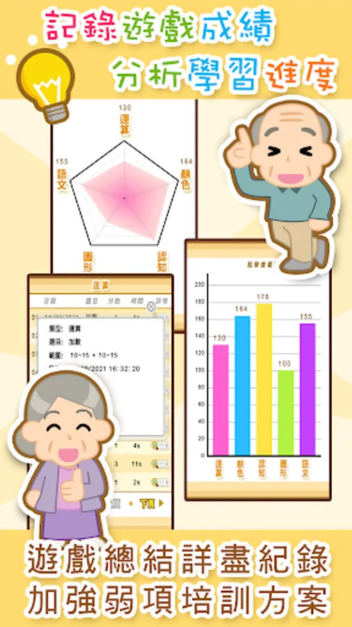 The results of each project will be recorded in detail, so that caregivers can understand the strengths and weaknesses of the users and formulate training programs to strengthen the weaknesses.
