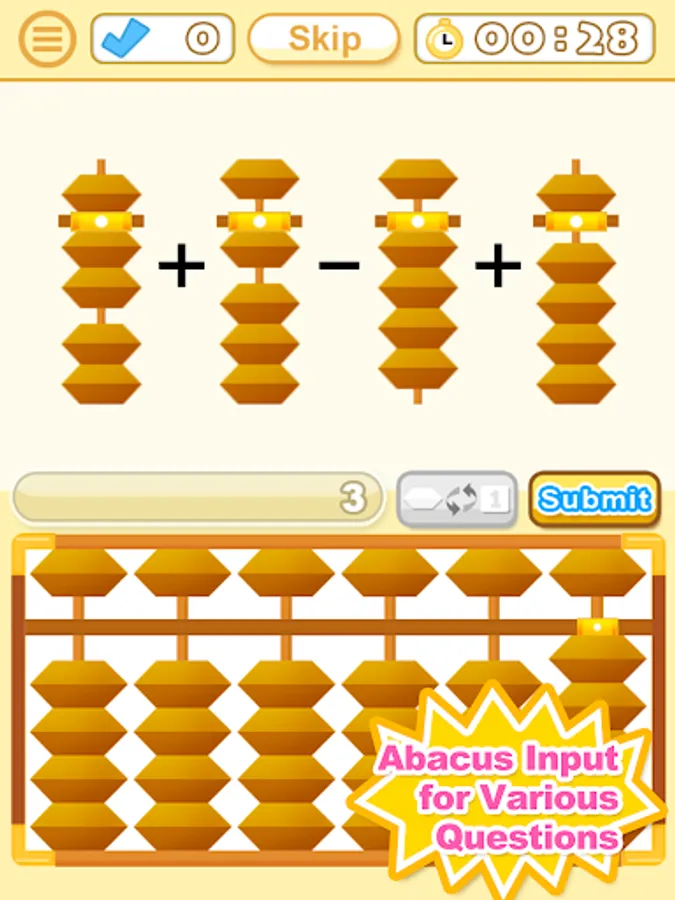 - Practice and Challenge modes are provided in all sorts of Abacus Beads and Numbers questions.
