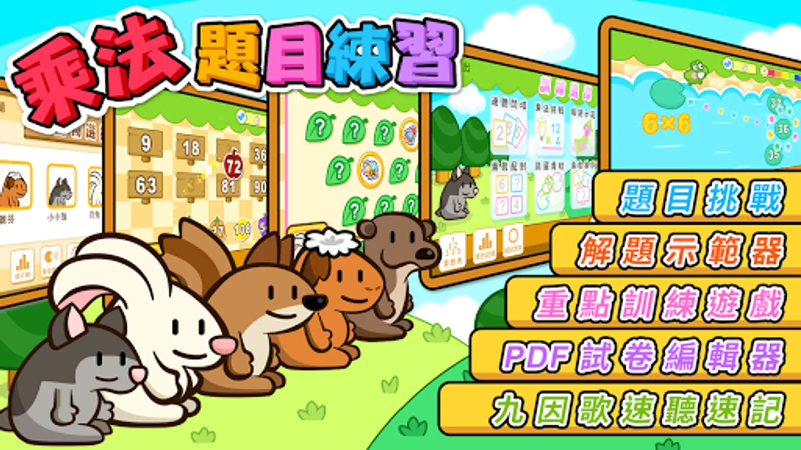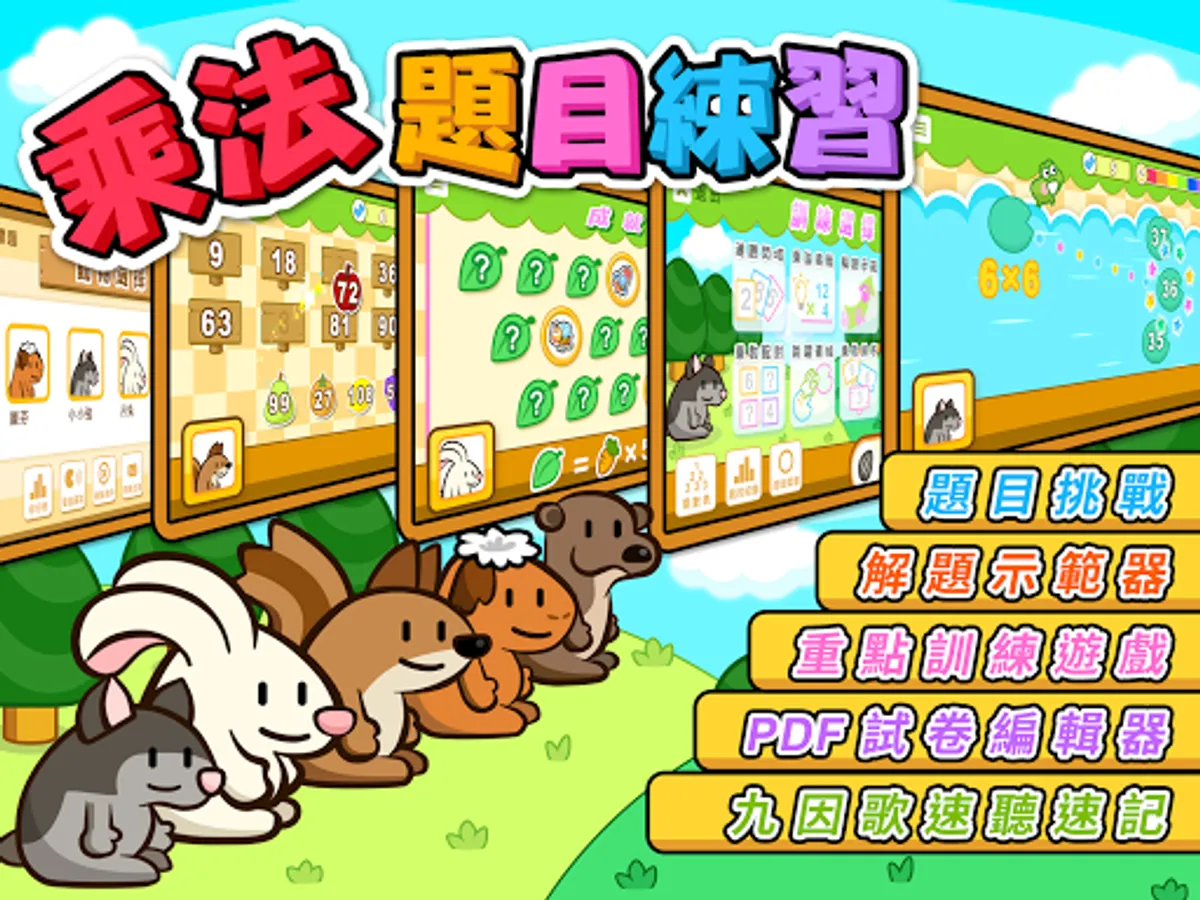 是一套專為兒童而設,透過速聽輕易熟練九因歌,通過有趣的重點訓練遊戲練習乘法,解題示範器及試卷編輯器,幫助針對弱項自製特訓方案。