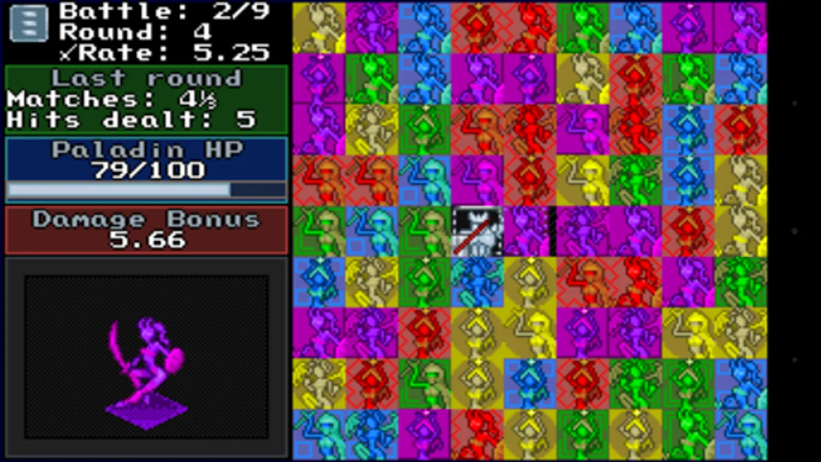 Build chains of multiple matches and multiple attacks to dispatch the doomed Paladin more quickly and mercilessly, and you will earn the best score.