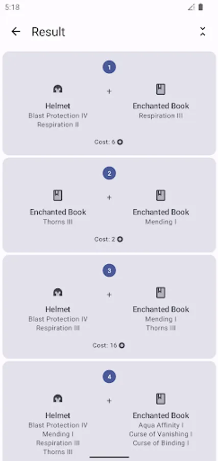 No more reaching the anvil's "too expensive" limit before you get your item fully enchanted. Save XP using Enchantment Order. This app allows you to see the best order of enchanting your item with an anvil.