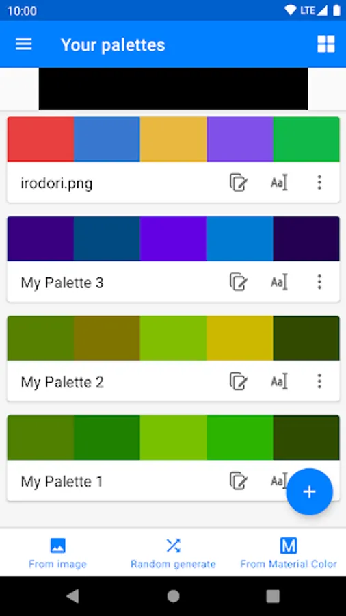 Iro Dori is a utility app that can freely generate up to 5 colors palettes at free ("free", it means "mustn't pay the fee to use this app") and made in Japan. Palettes can be generated with any color specified, can be generated from an image, or a randomly generated ones can be saved.