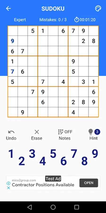 🔢 Note tracker in this number puzzle classic game allows you to track your notes.