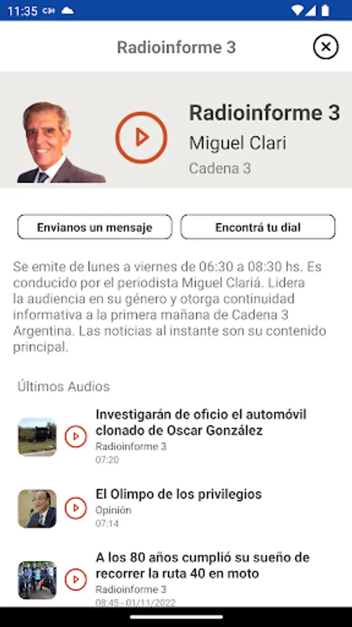 The Cadena 3 Argentina mobile application will allow you to listen, without interruption, to all the programming of each of our stations. You can also stay informed 24 hours a day through notes, audios and images that you can share with your friends on WhatsApp, Facebook and Twitter.