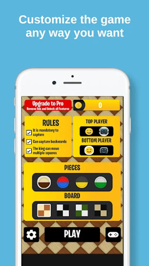 There are several strands regarding the Checkers Board Game rules, you can choose each aspect of the rules. With our app, you can play the following variations: