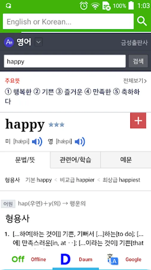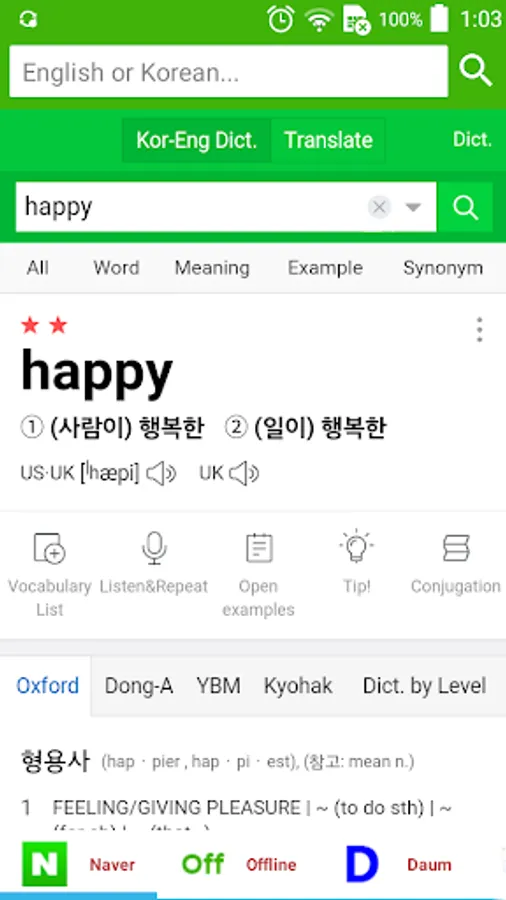 All English Korean dictionary, Korean English Dictionary in a single search