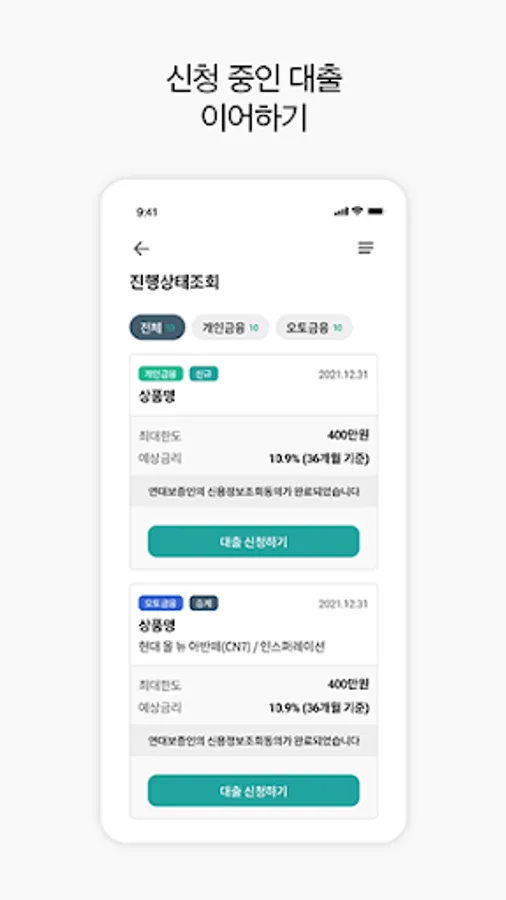 More convenient loan progress by continuing the loan you are applying for