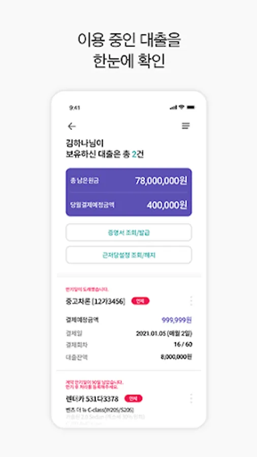 You can use it easily and quickly, including application for early repayment, application for termination of mortgage, fine/automobile tax, maintenance history inquiry, car succession, and auto finance services such as post-maturity processing.