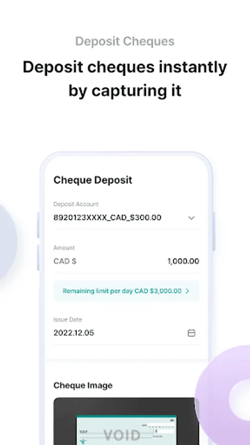 Camera is used to take a picture of your cheque for mobile cheque deposit.