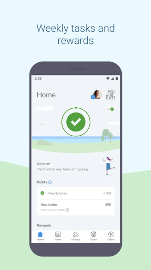 Build healthy habits by setting and following goals based on individual recommendations. Use tips suitable for everyday life as a guide. Stick to your goals and earn up to four badges.