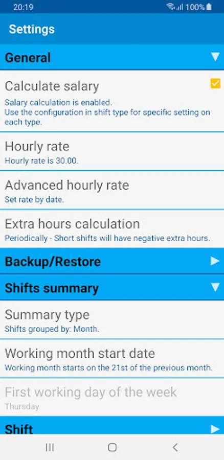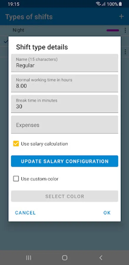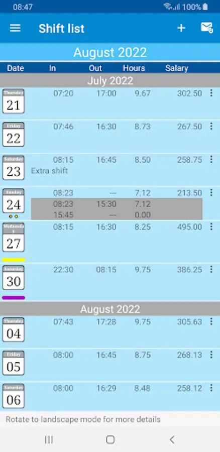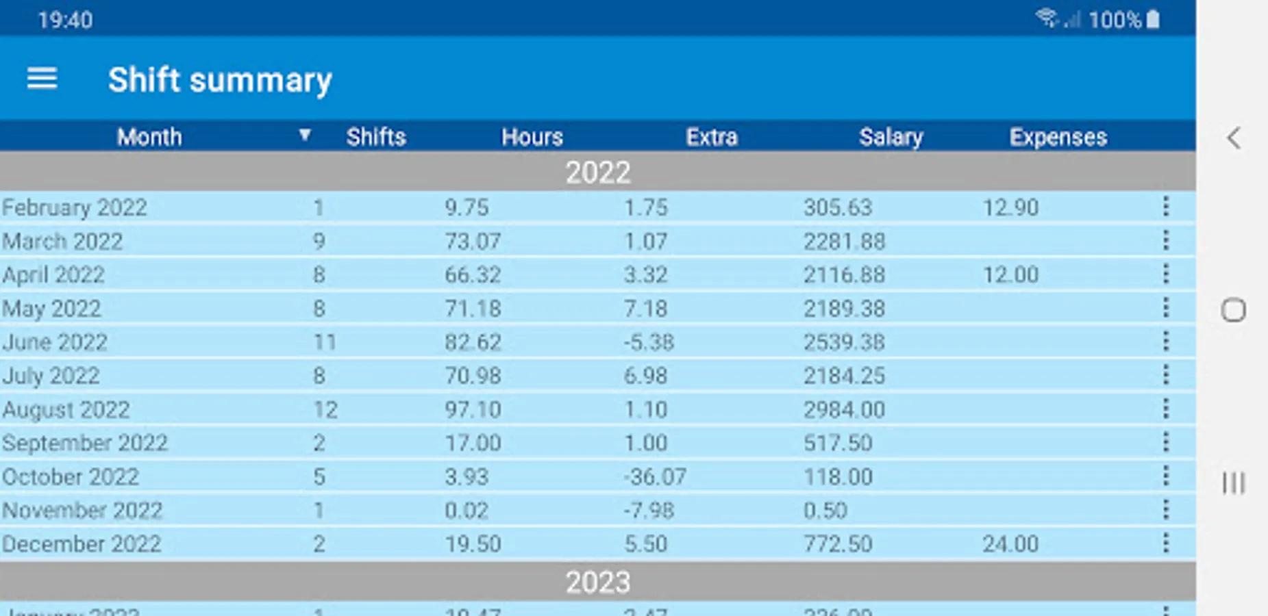 * Send email report of your working time (from "Shift List" view) in CSV (Comma Separated Value) format