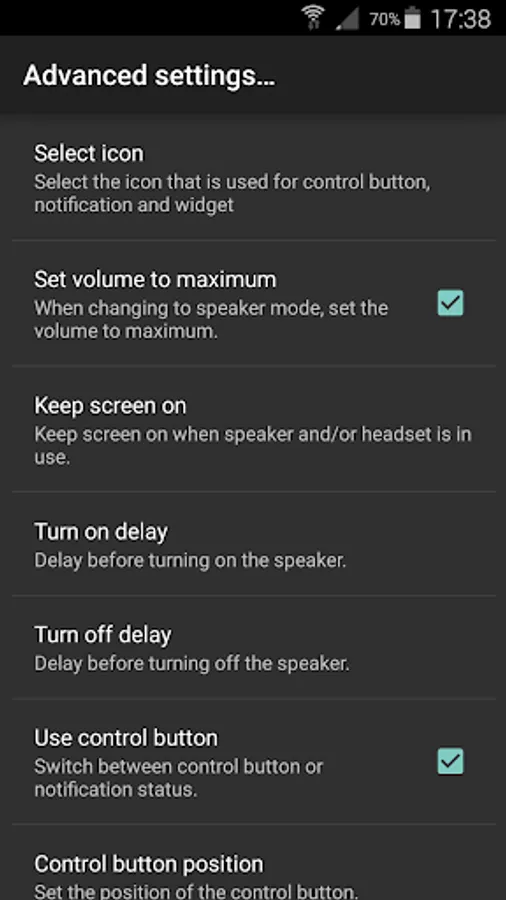 - Keep the screen on when speaker and/or headset is in used (optional).