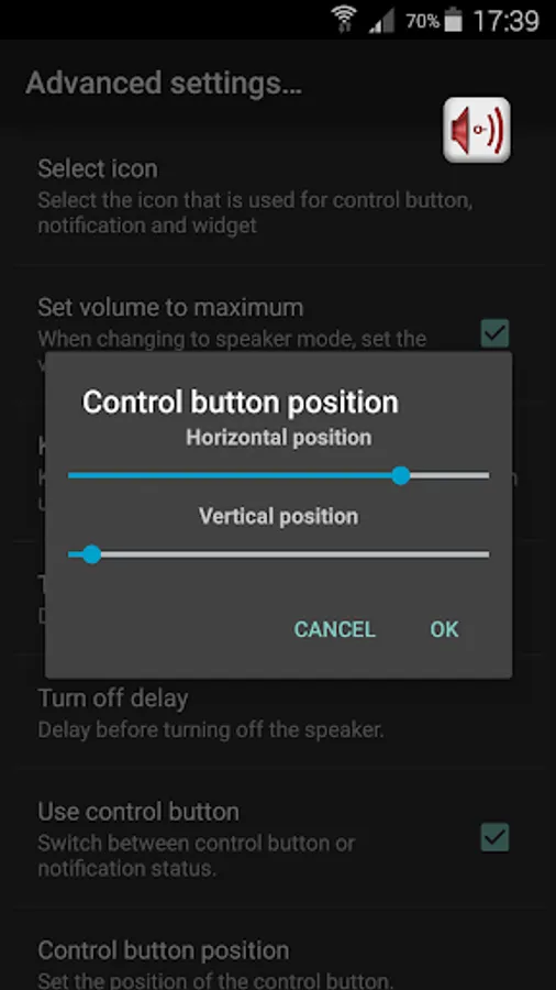 Default setting is to turn off the speaker quickly when putting it near the ear, but a longer delay to turn it off.