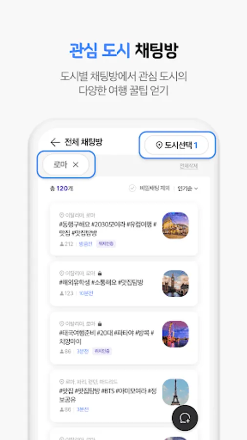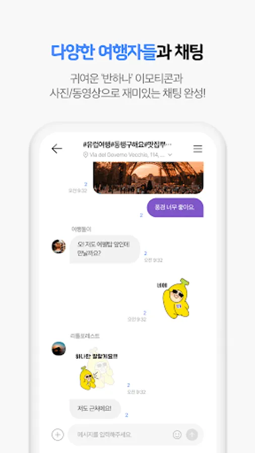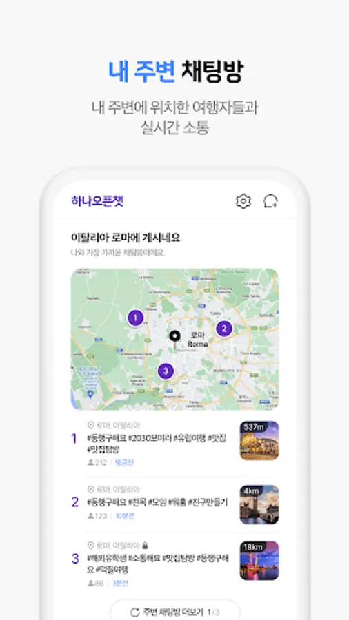 Create a chat room based on your location to quickly find companions in your travel destination and enjoy your trip.