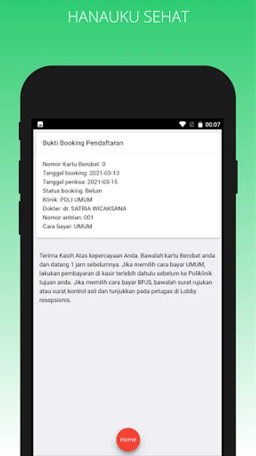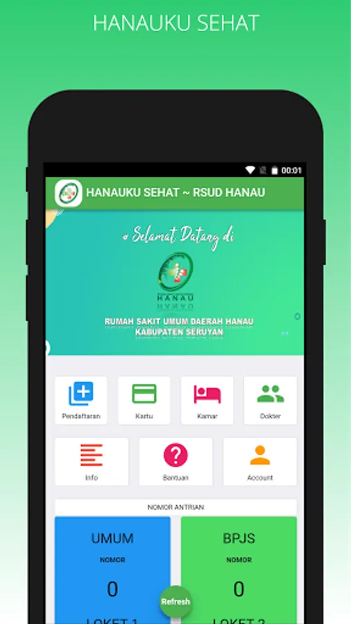 HANAUKU SEHAT is an Integrated Queuing and Registration System for HANAU Hospital. Application intended for patients who wish to register online at the Hanau Regional General Hospital.