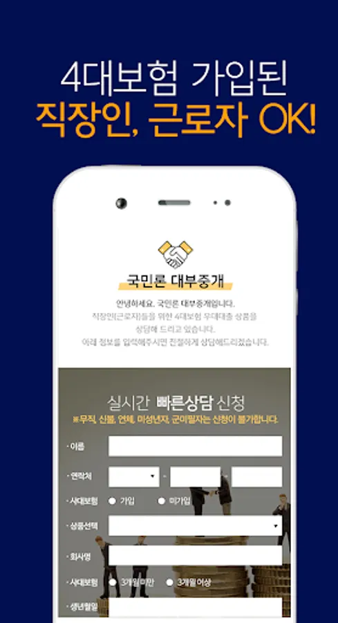 Credit Loans for Office Workers are for office workers and workers who have been in the 4 major insurance for 3 months or longer.