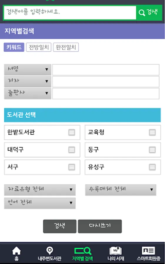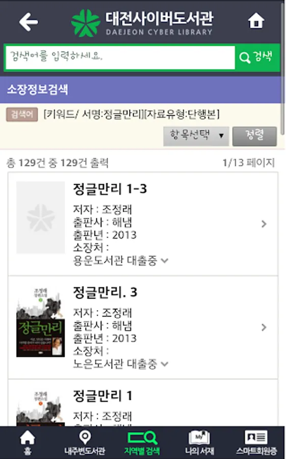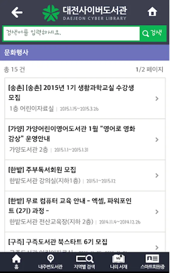 ● Search: Daejeon, and shows the data that is retrieved into the small intestine in 23 public libraries.