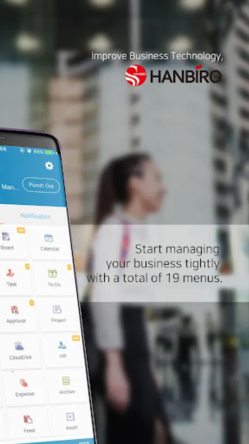 With a total of 19 menus, Hanbiro Groupware is tightly equipped with the Groupwear features that businesses need, including mail, electronic approval, and projects.
