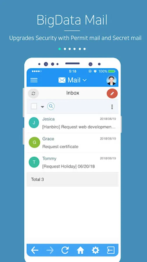 · Mail : Block spam and virus mail and keep sensitive information at work that can be leaked with authorized and confidential mail services.