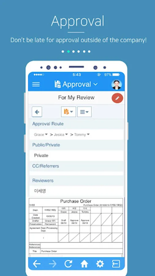 · Approval : Mobile notification will be activated when the time you need to sign.
