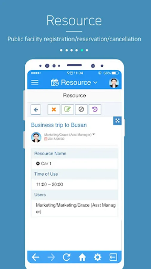 · Resource : This is a management function used to register, schedule, or cancel supplies or facilities for public use.