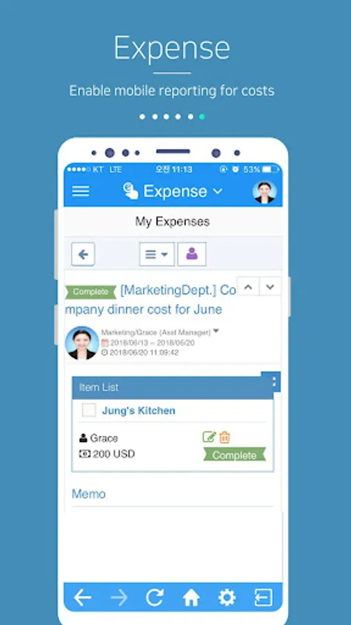 · Expense : It is the ability to report, handle, and manage costs occurring both internally and externally, and to easily manage the costs incurred by the enterprise.