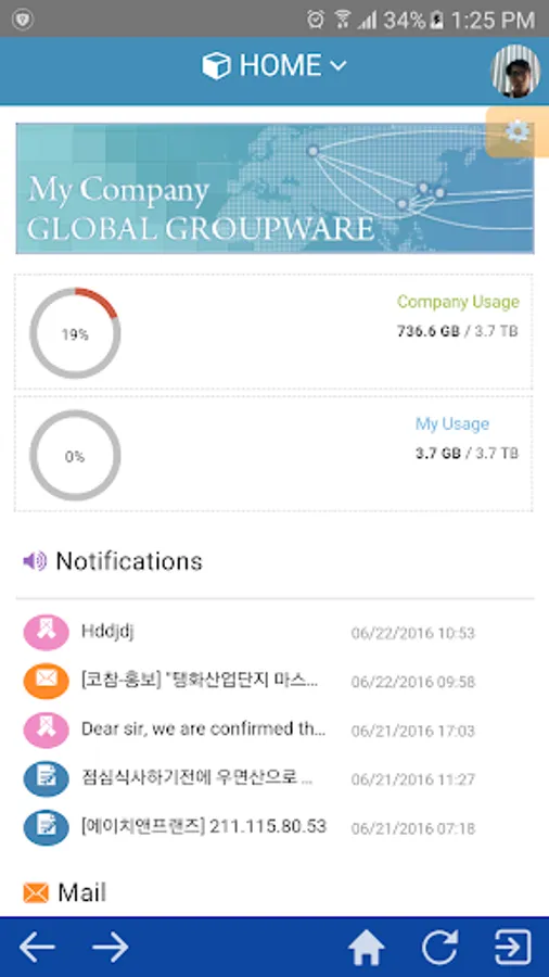 · CloudDisk : All forms of documents can be managed centrally on the central server and are easily accessed from the All Attachments menu within Groupwear. When uploading, data is encrypted and stored, so you can keep it safe.