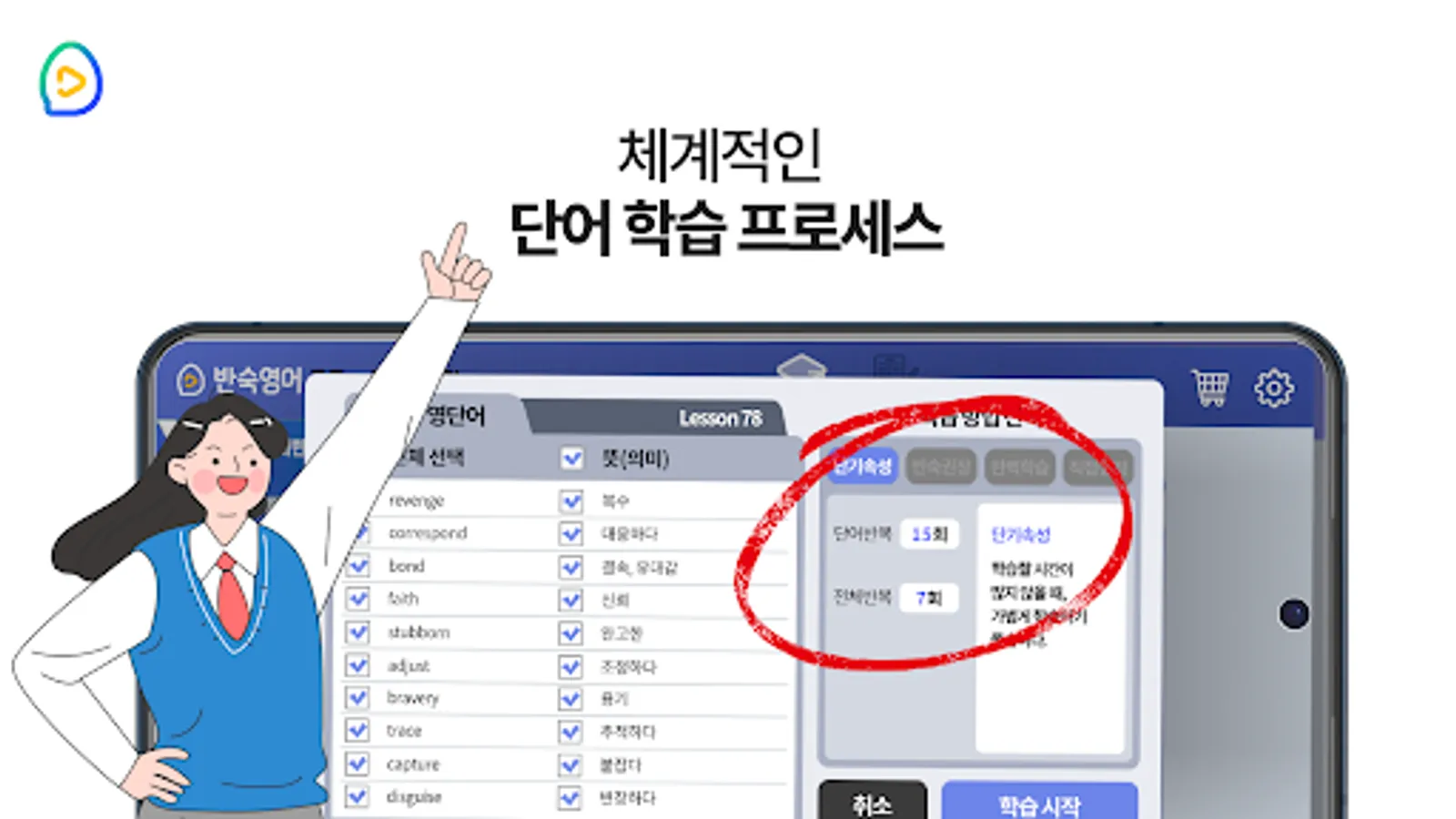 It contains the essence of ‘repeat’ learning of O English, the highest peak of the Korean English repetition learning app.