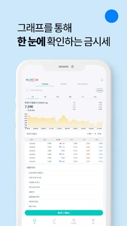 - Provides real-time international gold price linkage and easy and convenient digital gold (gold) trading between individuals using market price charts.
